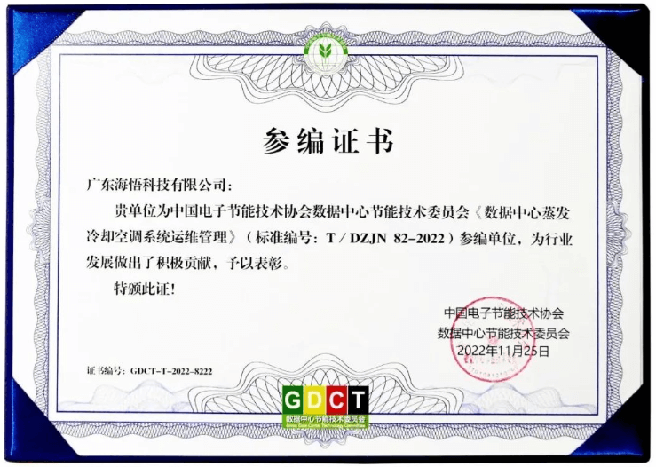 峰會期間,海悟集團被授予《數(shù)據(jù)中心蒸發(fā)冷卻空調系統(tǒng)運維管理》的參編單位證書,共同見證數(shù)據(jù)中心蒸發(fā)冷技術相關標準的啟動儀式,并參與探討相關技術規(guī)范的編制工作。行業(yè)標準制定是產業(yè)發(fā)展的基石,也是建設制造強國和網絡的重要部分。 多年來,海悟積極參與各類數(shù)據(jù)中心基礎設施及行業(yè)技術標準的編制,主編或參編近百項國家標準、行業(yè)標準及團體標準,為更多行業(yè)樹立標準規(guī)范,護航數(shù)據(jù)中心和暖通空調領域行穩(wěn)致遠。