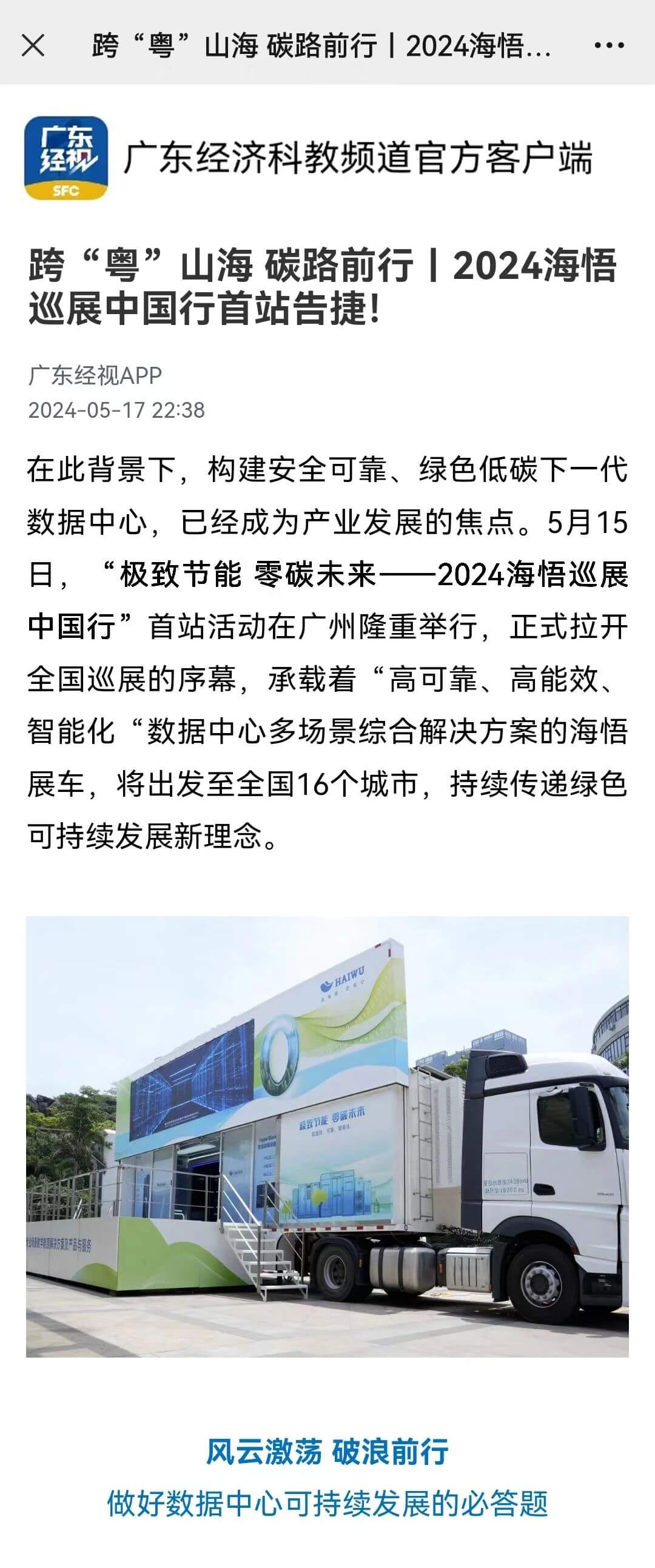 海悟帶著綠色數(shù)據(jù)中心解決方案走向全國,廣東經(jīng)濟(jì)科教頻道亦對海悟巡展中國行廣州站做了詳細(xì)報道。