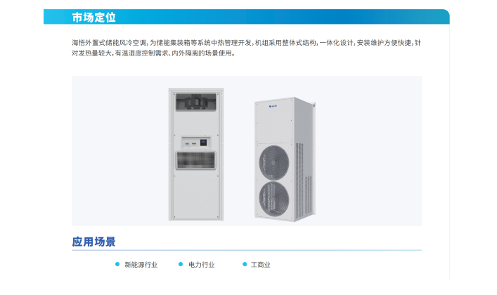 作為國(guó)內(nèi)知名的數(shù)字能源和清潔能源解決方案及解決方案定義的產(chǎn)品與服務(wù)提供商,海悟推出了PHU整體式全天候節(jié)能機(jī)組、一體化節(jié)能柜、儲(chǔ)能風(fēng)冷空調(diào)。