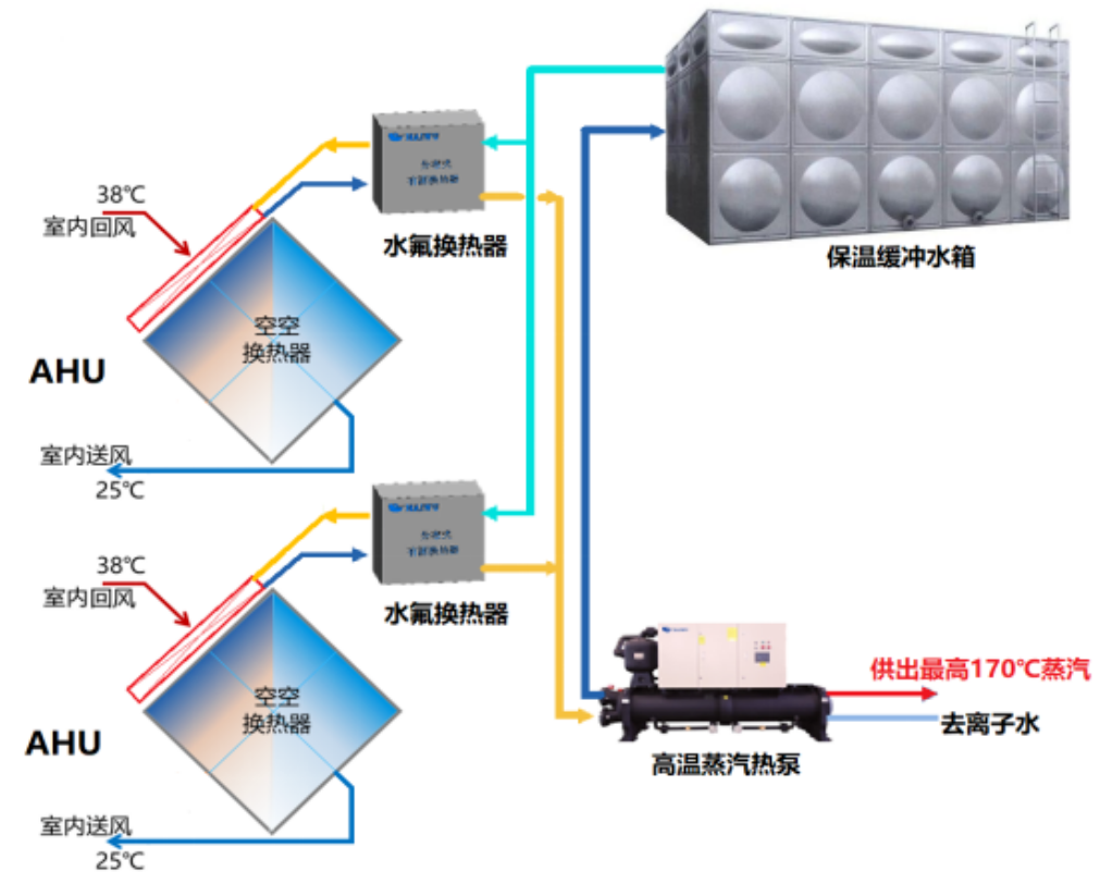 (圖2a)AHU空調(diào)系統(tǒng)機(jī)房回風(fēng)余熱回收原理