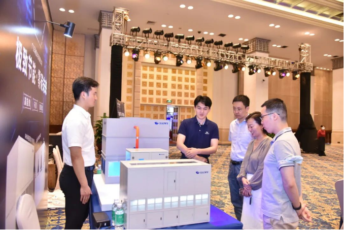 大會上展示了海悟最新的技術(shù)成果和解決方案,包括AHU間接蒸發(fā)冷卻節(jié)能機組、磁懸浮相變多聯(lián)系統(tǒng)、低壓比變頻氟泵機房空調(diào)、PHU整體式全天候節(jié)能機組、水冷化改造等,引得眾多嘉賓駐足了解。