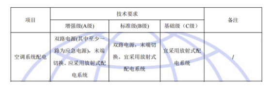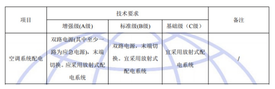 國標GB50174-2017《數(shù)據(jù)中心設計規(guī)范》中對于A、B、C三級數(shù)據(jù)中心空調系統(tǒng)配電的具體要求如下: