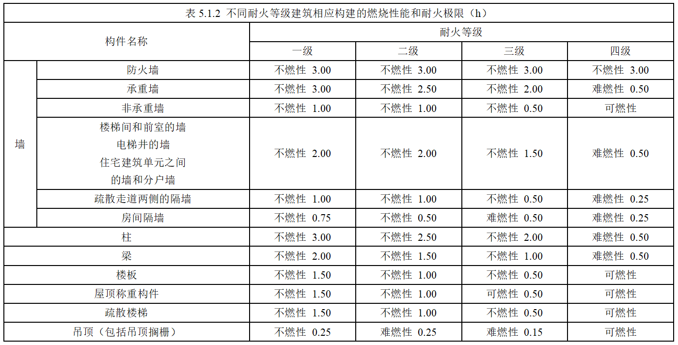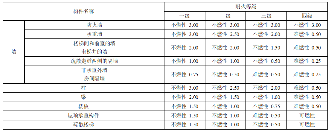 根據(jù)不同耐火等級,要求結(jié)構(gòu)構(gòu)件具有不同的燃燒性能和耐火極限。具體如下圖所示: