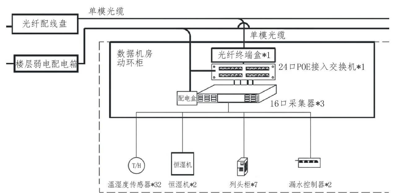 ● 智能監(jiān)控系統(tǒng):采用物聯(lián)網(wǎng)技術(shù)和傳感器,實(shí)時(shí)監(jiān)測數(shù)據(jù)中心的溫度、濕度、電源等環(huán)境參數(shù),確保數(shù)據(jù)中心穩(wěn)定運(yùn)行。如下圖2為動(dòng)力環(huán)境監(jiān)控系統(tǒng)圖: