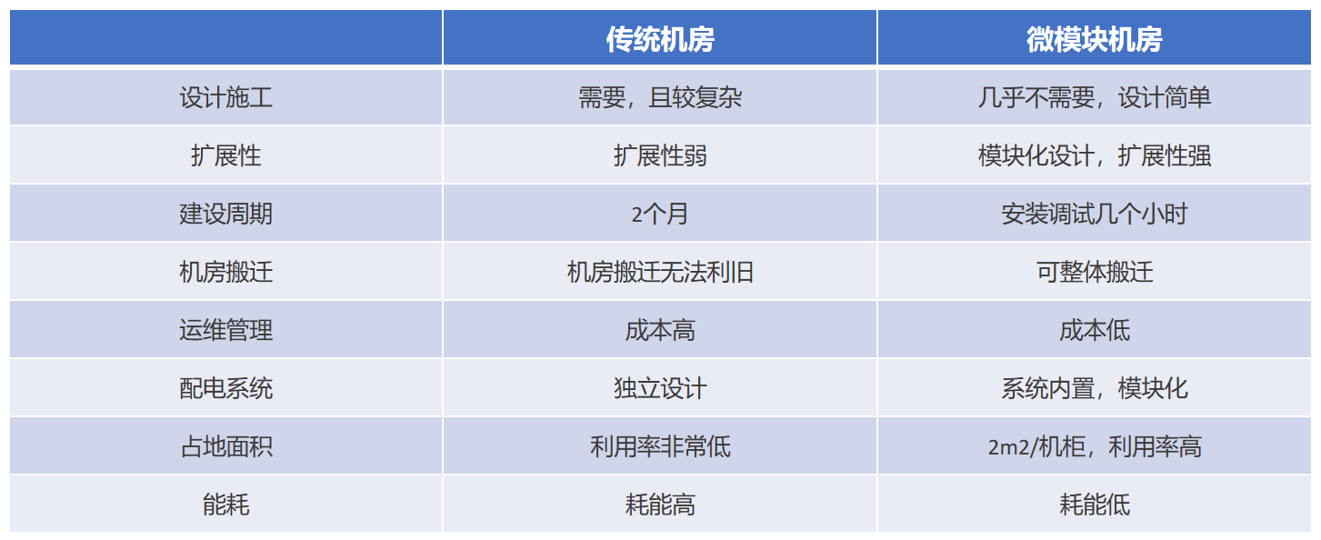 而在節(jié)能降耗的前提下,對于改造或者新建的數(shù)據(jù)中心機(jī)房,可以考慮采用微模塊的方式,微模塊具有部署靈活、高度集成、安裝省心省力等優(yōu)勢,并且相比傳統(tǒng)機(jī)房,還具備以下優(yōu)點(diǎn):