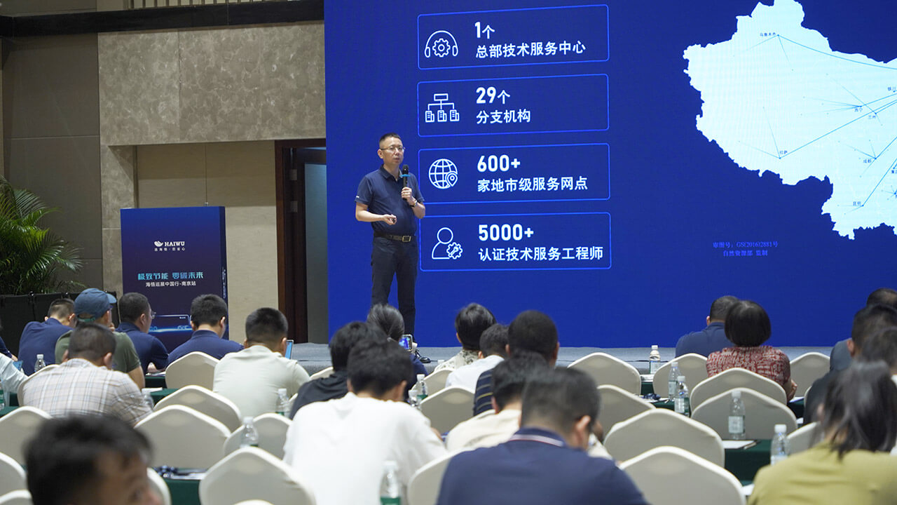 海悟集團何正煒何總首先上臺致辭,他的話語中充滿了對綠色能源與可持續(xù)發(fā)展的深刻理解,以及對南京作為國家人工智能創(chuàng)新應用先導區(qū)建設的堅定支持。何總的致辭不僅為活動定下了“極致節(jié)能 零碳未來”的主基調(diào),更激發(fā)了現(xiàn)場每一位參與者對于綠色科技未來的無限憧憬。