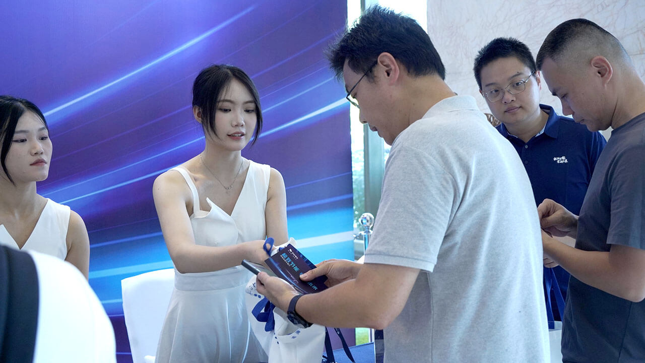 下午兩點(diǎn),隨著嘉賓們的陸續(xù)抵達(dá),活動(dòng)正式拉開序幕。簽到區(qū)人頭攢動(dòng),每位嘉賓都領(lǐng)取到了精心準(zhǔn)備的公司介紹折頁(yè)、精美小禮品以及詳盡的數(shù)據(jù)中心解決方案畫冊(cè),現(xiàn)場(chǎng)背景簽名墻更是成為了大家爭(zhēng)相合影留念的熱門地點(diǎn)。展車旁,早已聚集了眾多好奇的參觀者,他們迫不及待地想要一睹海悟集團(tuán)最新技術(shù)的風(fēng)采。
