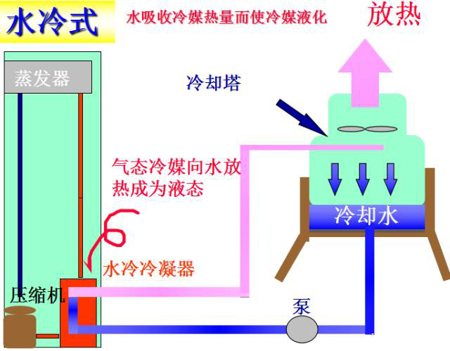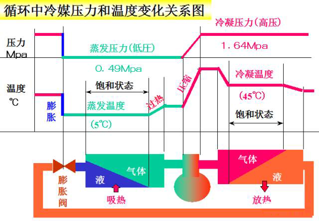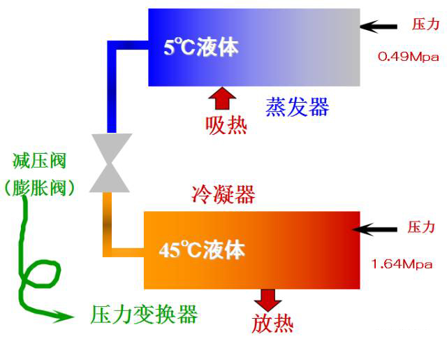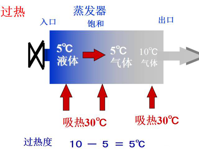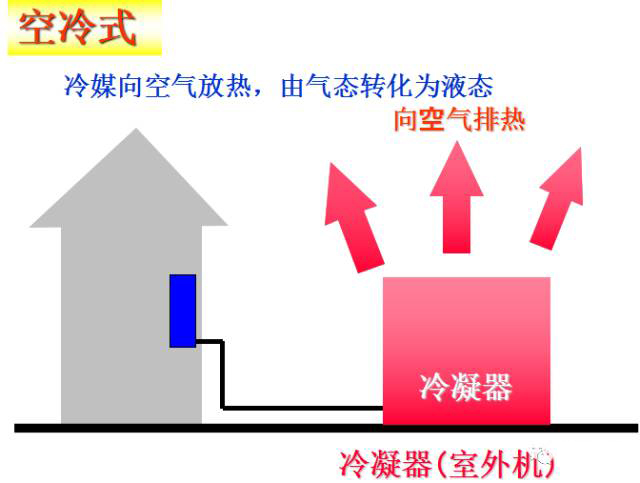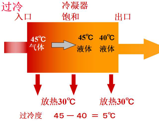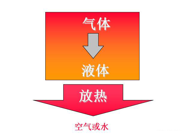 氣態(tài)的冷媒向周圍的空氣或水放熱,氣態(tài)冷媒液化為液體