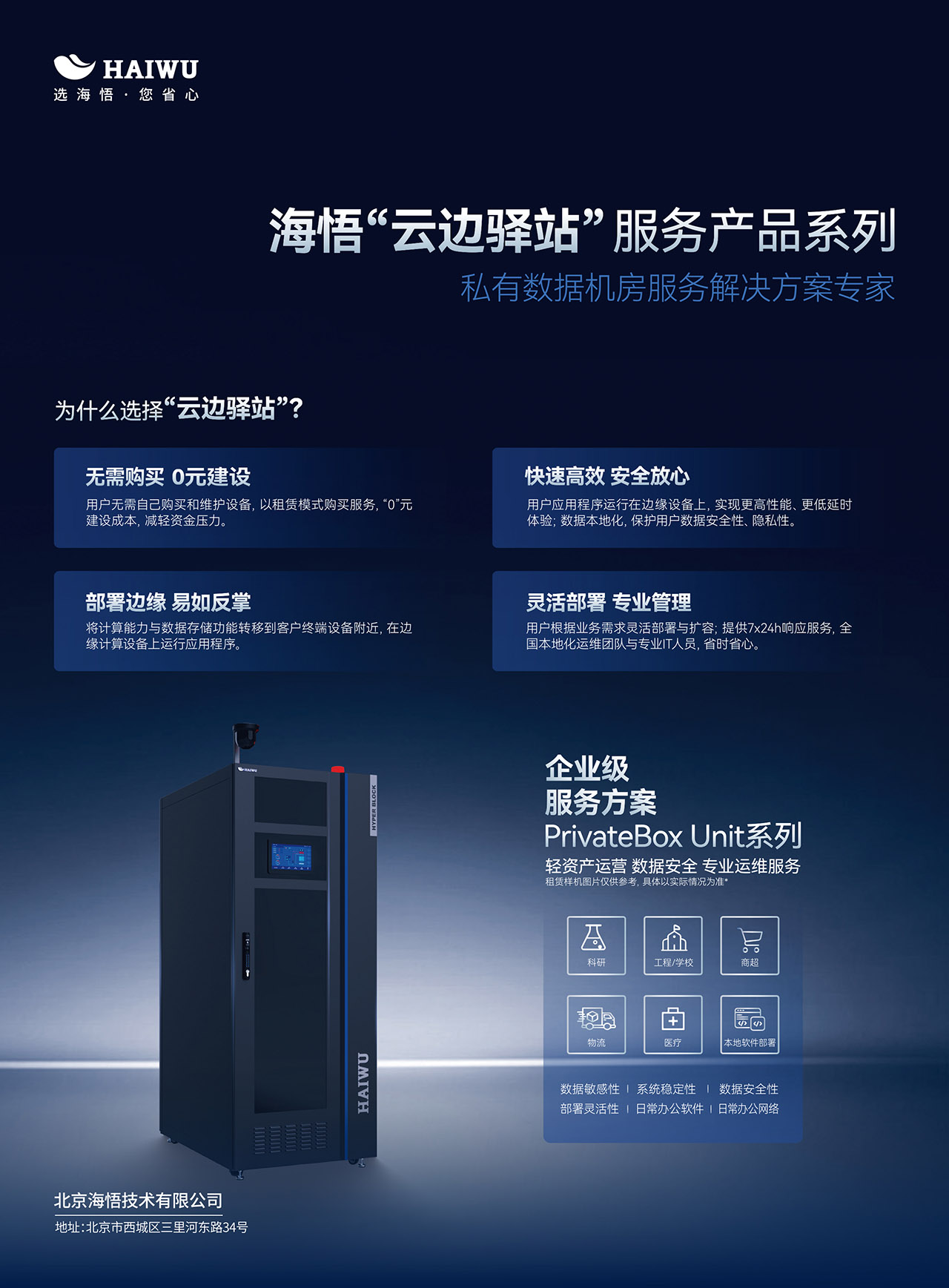 海悟云 “云邊驛站” 企業(yè)級(jí)本地化私有數(shù)據(jù)機(jī)房托管服務(wù)解決方案,應(yīng)運(yùn)而生,精準(zhǔn)破解傳統(tǒng)企業(yè)私有云的三大痛點(diǎn)。作為解決企業(yè)本地化算力以及數(shù)據(jù)安全存儲(chǔ)需求的專業(yè)服務(wù),“云邊驛站” 提供數(shù)據(jù)中心就近托管服務(wù),為企業(yè)打造安全、靈活、可靠的基礎(chǔ)設(shè)施,讓企業(yè)徹底擺脫成本、運(yùn)維和空間的困擾。?